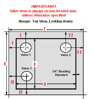Enter the dimensions for blanket, beading and valves (if applicable). Use the diagram as a guide.